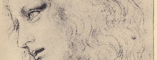 Detail of the face of St John from the Burlington House Cartoon. One of the things that Leonardo did so well, in my opinion, is hair. I’m not sure why, but these ringlets of hair as drawn here are just fantastic.